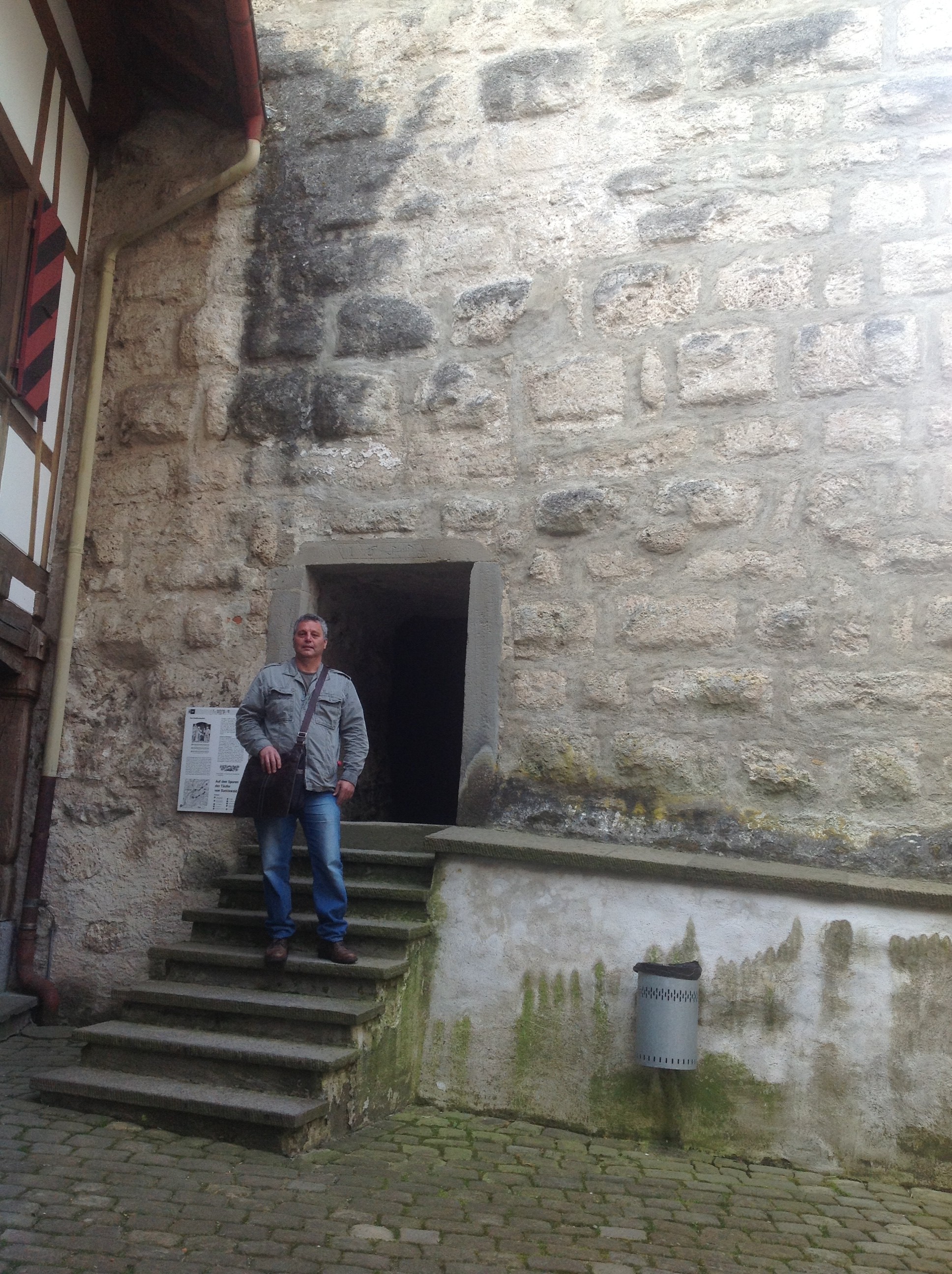 We approached the tower and entered. And up the steep old rickety stairs to the second floor. Then the third. Jean-Pierre recognized what this moment meant to me, and he respected it. We talked in hushed tones. Here are shackles, on the wall. And up here, on this floor, are cells. And up on the next floor, too. He took my iPad and quietly snapped pictures of those moments. And I took a black marker from my messenger bag and wrote my name on the wooden cell wall. I was here. Along with hundreds and hundreds of others who had been. I would tell of it, I said to Jean-Pierre. This place is almost a holy place, because it harbors so much of the story of who they were, those poor Anabaptist farmers. And who we are, their descendents. They were tortured here. They died here.