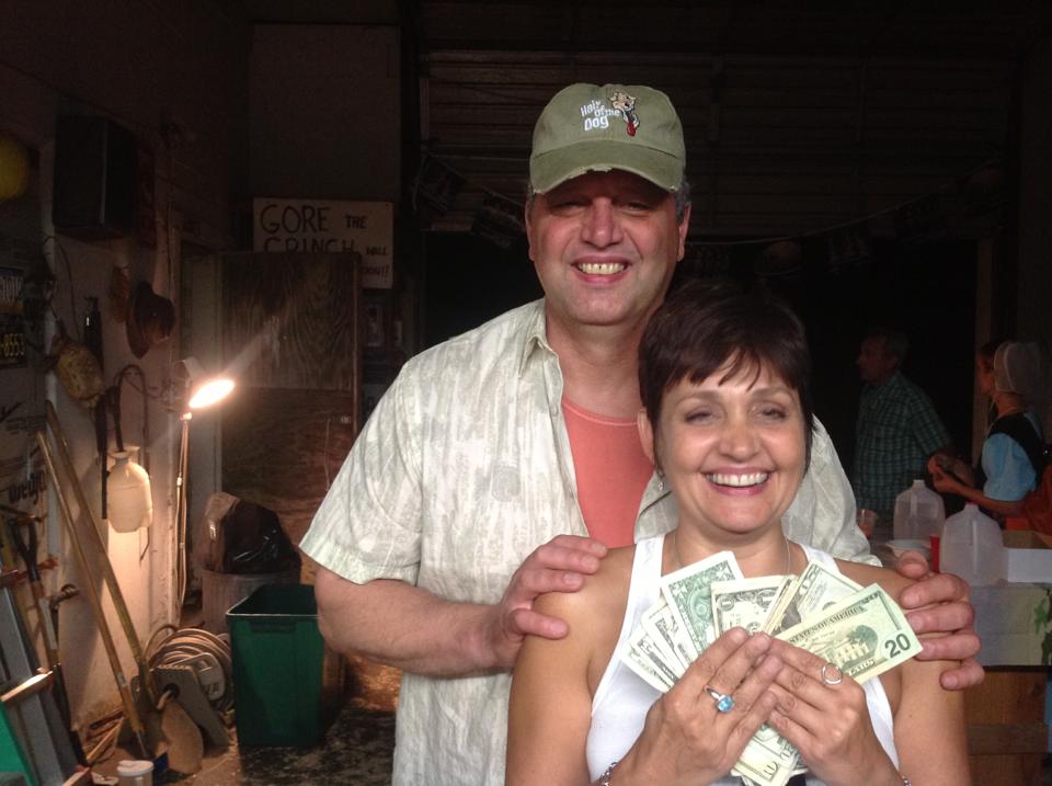 Things moved along, then. Linda came to my garage party that year, as always. That’s when we always connected, most closely. She was just so exuberant and alive and free. And she always scooped up the money from the Hi-Lo games at my bar. And she always held the fan of $20 bills high and wide, with the biggest smile you ever saw. I always tried to take a picture of me and her together, at that moment. I figured I had the right to stand with her, being the host and all.
