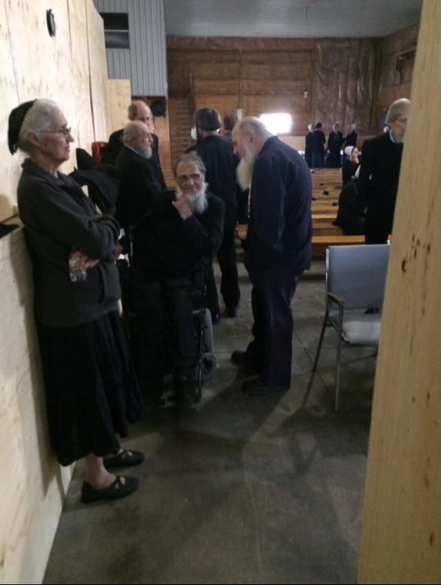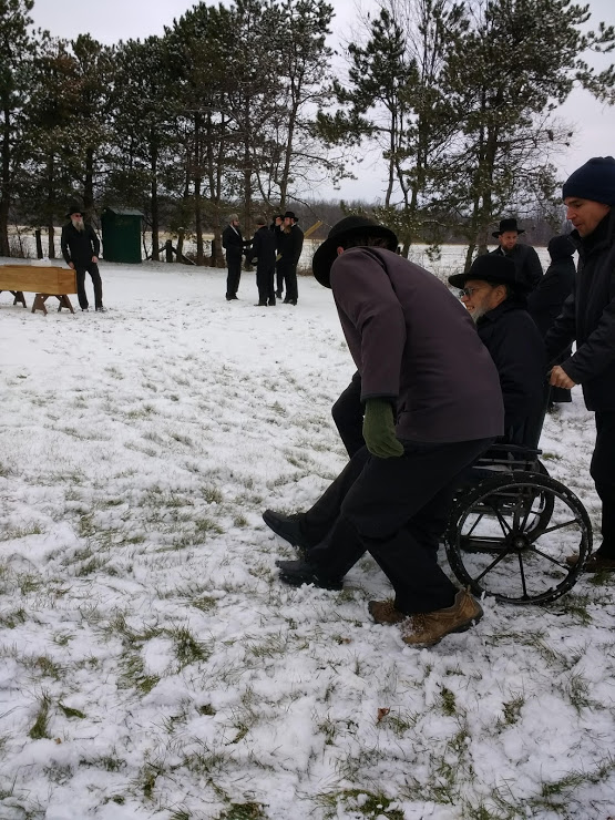 This day was pretty much a repeat of the day before, except there were more people. Friday was a little slow. Saturday was much busier. Everyone arrived from my family, the ones who had to travel a distance. All of them got there by Saturday afternoon sometime. My brother Joseph came with Iva, accompanied by several of his sons and his youngest daughter, Rosanna. He was not well. He could walk some, they also pushed him around in a wheelchair. He didn’t shake hands with anyone. Germs. He had to be extra careful. We welcomed every one of them as they came. This was it. This was Dad’s funeral. We would all make it. A lot of the grandchildren, my nieces and nephews, a lot of them showed up, too. There are fifty-nine. Not all could make it, of course. But a lot did. It is noteworthy that Alvin and Naomi’s son, Gideon Yutzy and his wife Esther and their infant youngest daughter flew over from their home in Ireland. From Dublin to Toronto. It used to be years ago that people couldn’t go more than a few hundred miles for a funeral, what with news traveling slow and slow transportation. Now, you can fly in from anywhere in the world, if you’re of a mind to. I got to chat with Gideon some. At a funeral like that, you’re lucky to visit with any single person for much more than ten minutes.