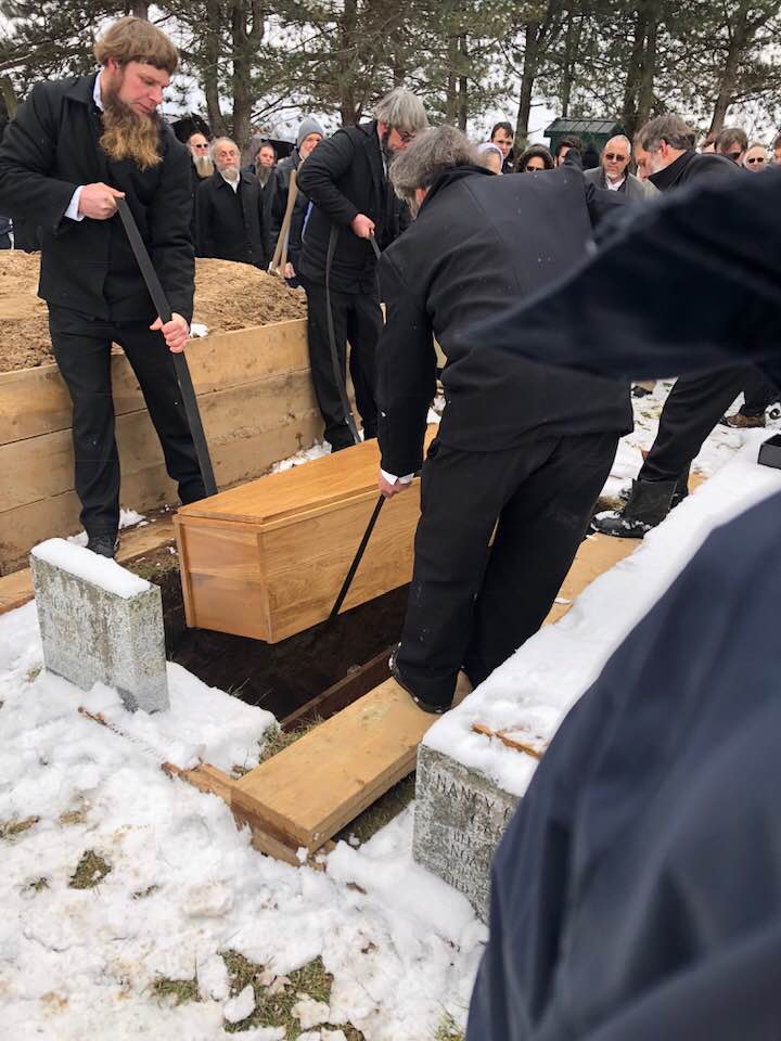 The day drifted on. The family arrived in spurts and fits. Rachel and Lester and many of their children flew into Detroit, then drove across the border from there. And soon after five, supper was served again. The thing about an Amish funeral is, everything is done for you. The food shows up, the funeral service site is cleaned and organized and heated. The grave is dug by hand. The grieving family just sits back and experiences everything. It’s beautiful. We ate, then, and I was hungry. I loaded a plate with salad and hot casserole food. Everything was delicious. One little note, though. I don’t think the Aylmer people eat a lot of meat, because it sure was sparse in those dishes. A tiny speck of ham floated around forlornly now and then. But it was all good. When you’re getting fed like that, eat and appreciate. That’s what I did, or tried to.