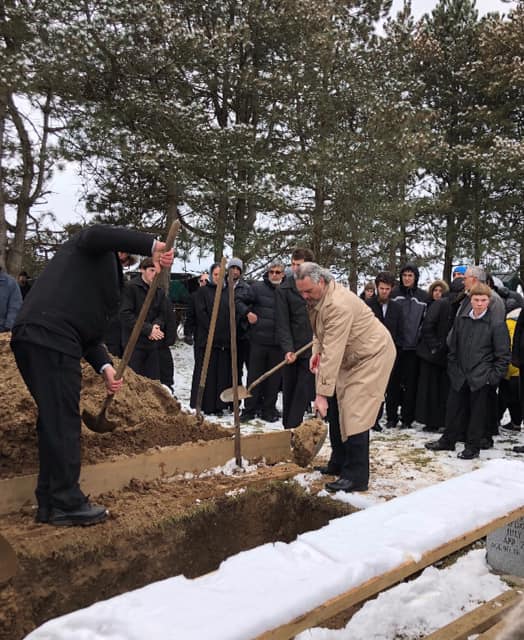 The pallbearers approached. The four men who had carried Dad out from the service. They now picked him up with crossed boards and carried him over to the open grave. They set the coffin above the hole on those boards and placed their straps under. They lifted ever so gently, the boards were removed, and down, down into the earth went the wooden box that held my father. Back came the straps and down went the lid of the rough box the coffin was placed in. I waited for two of the men to step down into the hole, on the box. They always hand down the first shovels of earth, and gently place it around. It didn’t happen. First time I saw that at an Aylmer funeral. The men all took shovels and threw in the dirt from the top. Gently at first, until the box was covered. Then they shoveled hard. And then the family stepped in to help.