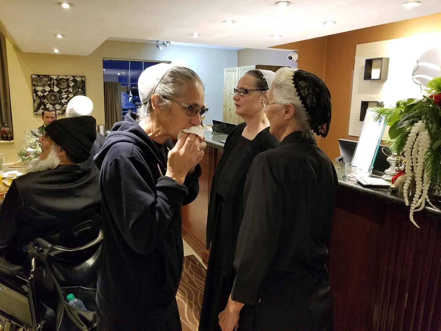 Sunday. The big day. I got up before six. Cleaned up and shaved and dressed in my black suit. The one I got married in. I couldn’t get the thing on for years there, back when I was drinking hard. Way too much bloated weight. After OMAD for a few months, I fit right in. Well, and after quitting drinking. I buttoned up a clean white shirt. No tie, though. I like to wear a tie to church at home, and to other places where it’s OK to do so. A lot of ex-Amish I know won’t wear a tie to an Amish funeral. There’s just something about it. The people at home, your people, they’ll know you’re just showing off, if you wear one. Getting a little fancy there, eh? No one would say anything. But they’d think things. And this is one of those rare instances where you don’t do something you otherwise would have, purely out of respect for your hosts. I am free to not wear a tie. That’s how I see it. And that’s how I dressed. Black suit, laid back English, of course. White shirt, buttoned to the top. And no tie. I shrugged into my trench coat and walked out front to the lobby, where a good many of my family were flitting about, eating breakfast and otherwise making noises to go to a funeral.