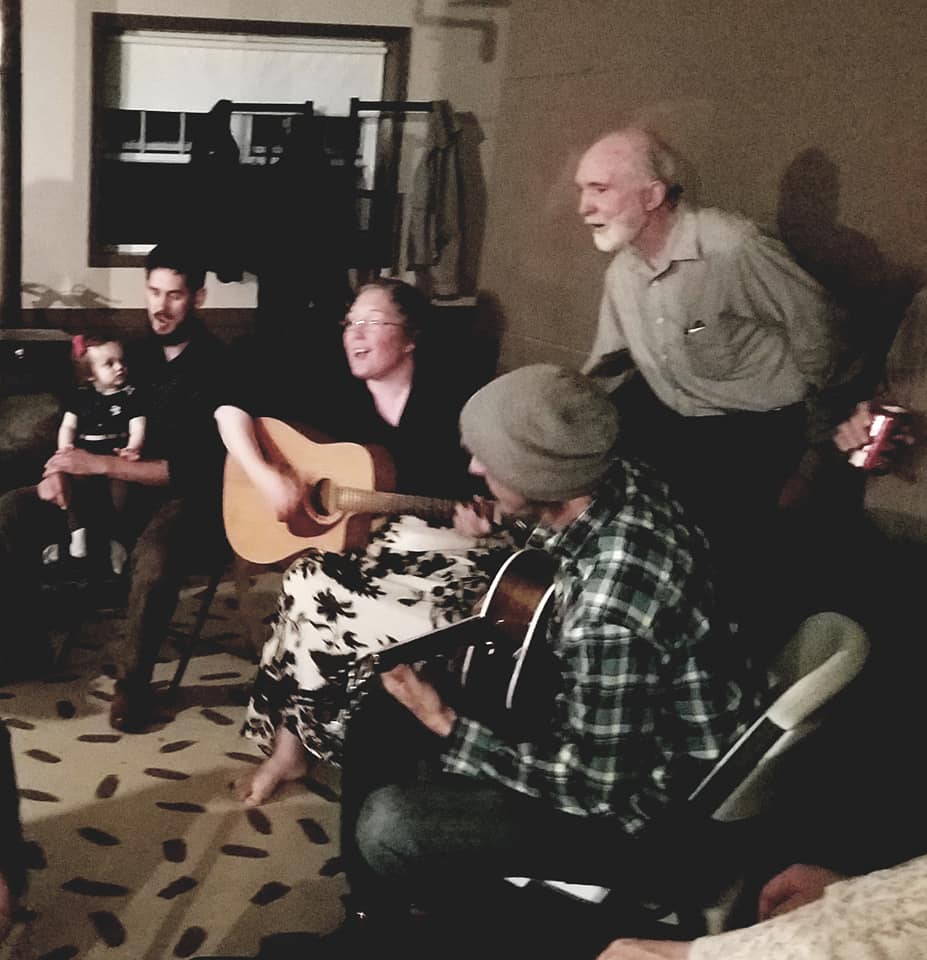 The Marners singing. Dorothy, Steven, Ray (standing).