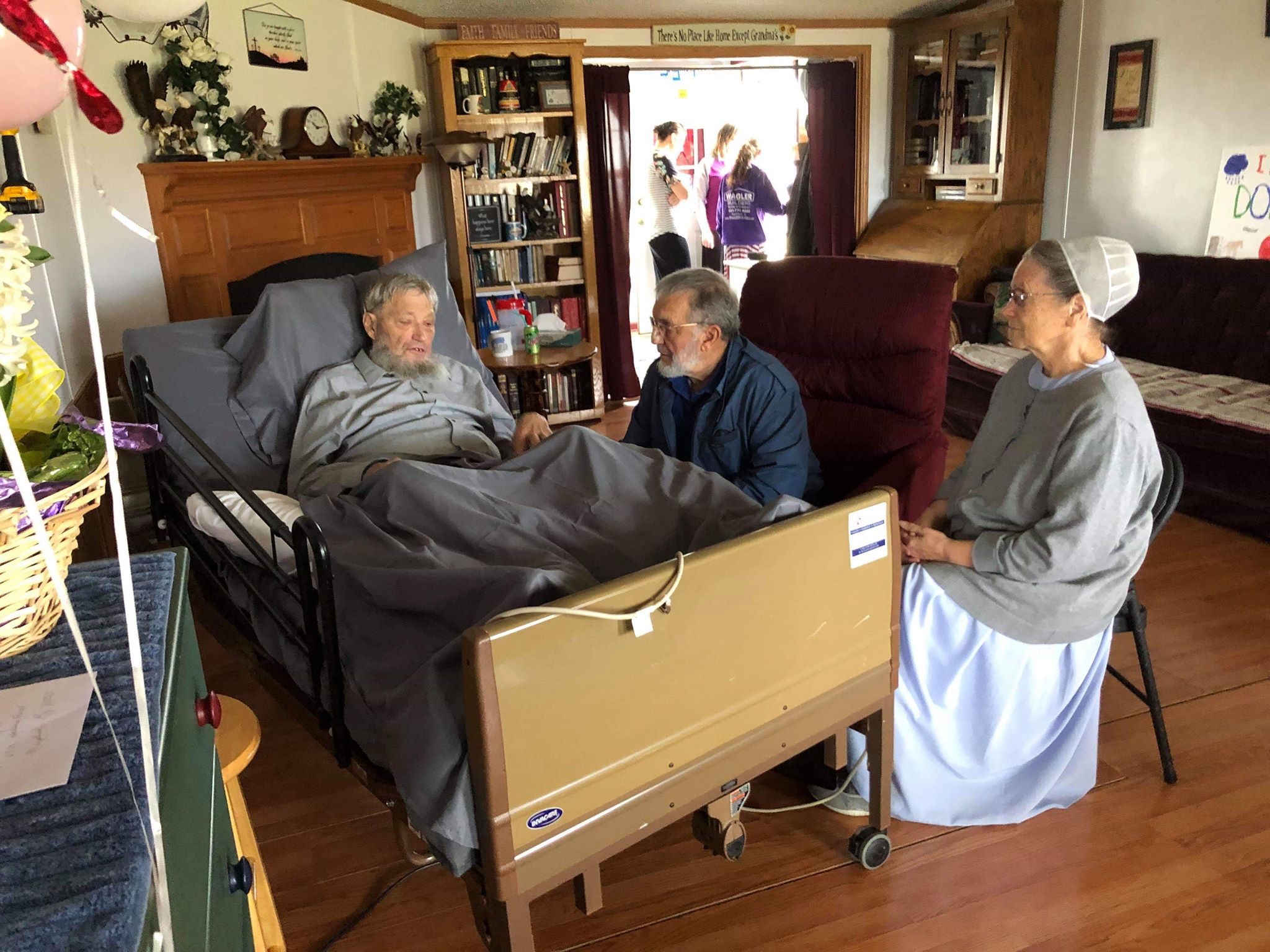 And then everyone was seated. Over on the preacher bench against the wall, the first preacher stirred and then stood. Simon Wagler, who had the opening sermon at Dad’s funeral a few months back. A few weeks before, when the tests had come back and Joseph realized his time was winding down fast, he made a request. He wanted to see three childhood friends. Simon Wagler. His brother, Pete Wagler. And Alvin Graber. The second they heard about it, Pete Wagler and his wife, Sylvia, dropped everything and drove from their home in western Pennsylvania to see Joseph. He was delighted to see them. He talked and talked, they visited and visited. When Pete and Sylvia left later that day, they didn’t know it, but they were pretty much the last people outside Joseph’s immediate family who saw him as lucid as he was. That relaxed. That conscious. Simon and his wife Susie traveled in a few days later to see him. He was still with it enough to talk. Simon stood by my brother’s bedside and read comforting Psalms aloud. At some point in there, Joseph asked Simon then if he would preach at his funeral. Simon agreed that he would.