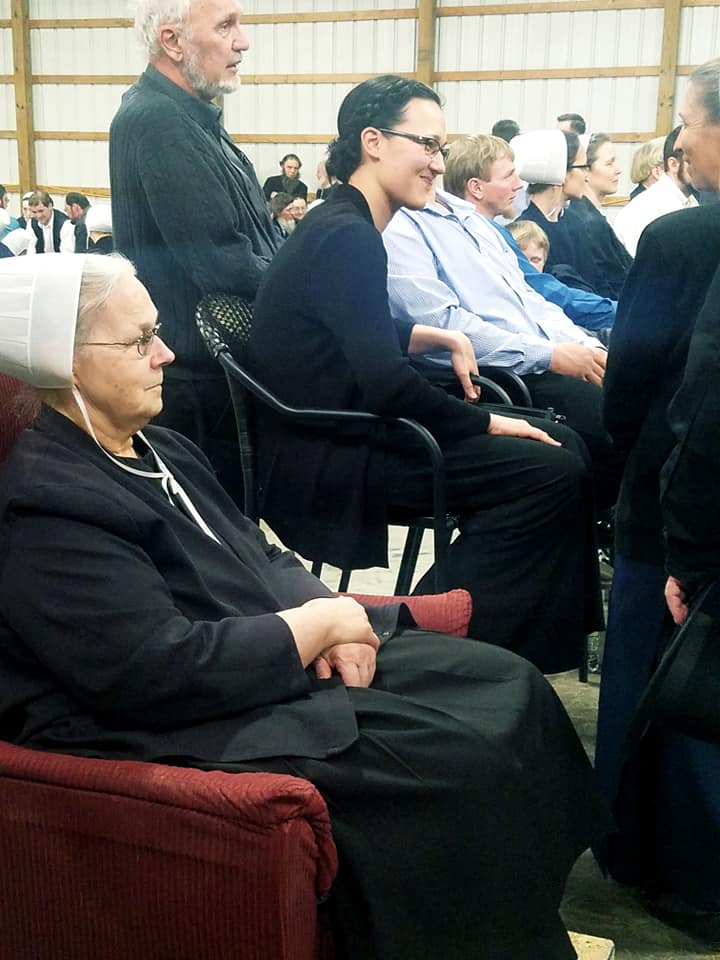 Tim sat down in good time, too. And then the crowds filed through, directed by the ushers. Men and women and youth and young children of every stripe, from many communities. And then Joseph’s children came up with their families, two families at a time. I won’t pretend to know the names of all the grandchildren. All thirty-seven of them were there. From oldest to youngest, the families came. John and Dorothy Wagler from Bloomfield. Rachel Irene and Lester Beechy, Amish from Bloomfield. David Ray and Barbara Wagler from Kokomo, Indiana. Reuben and Barbara Ann Wagler from Jamesport, Missouri. Mervin and Marlene Wagler from upstate New York. Glen and Leann Wagler from Kokomo. Mary Ann and Jason Stutzman from Worthington, Indiana. Laura Mae and Joshua Mast from May’s Lick. Rosanna and Joshua Shannon from May’s Lick. And Samuel and his girlfriend, Keila, from Kokomo.