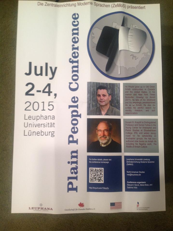 Right there from the trenches, right when I was writing to all the world from all kinds of dark caves, right then, here came an email, oh, sometime early last year, I think. From my old friend in Germany. Dr. Sabrina Voeltz. She was just enquiring. She and her team were trying to get a conference going, next summer, in 2015. Plain People Conference. She wasn’t sure the funding was going to come through, but if it did, would I consider being a keynote speaker? They would pay my travel and lodging expenses, and give a stipend on top of all that. She would be honored. Sabrina said, if I would consider coming over to speak, if it all worked out. And she was fairly confident it would. No promises, of course. But she thought it might, from what she was seeing.