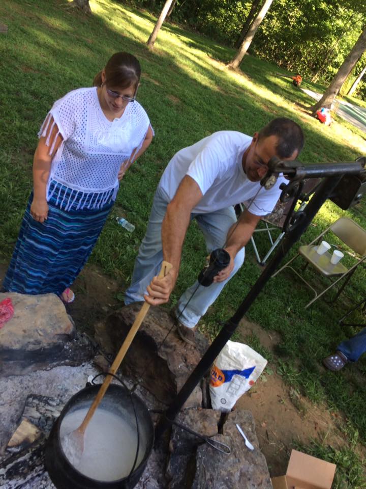 Saturday morning. Breakfast would be around the campfire around nine. I showered and wandered out for coffee. John had a large black pot hanging over the open fire. I lifted the lid and peeked in. Sausage was simmering. There would be gravy. I looked at John suspiciously. Are you sure you know what you’re doing? John looked indignant. Of course. We sat around and drank coffee and munched on homemade Amish donuts. John soon added flour and milk to the sausage and stirred the whole mess with a great wooden spoon. I was impressed. I didn’t know the boy had it in him, to cook up a batch of gravy like that.
